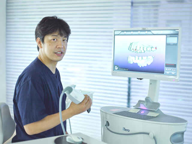 「なるべくストレスなく矯正治療を受けて欲しい」という思いから、当院ではマウスピース型カスタムメイド矯正装置(インビザライン)を用いた矯正治療をおこなっています。インビザラインによる矯正治療は、透明のマウスピースを使用しますので、「取り外しが簡単で普段通りのお食事や歯磨きができる」「装着時の見た目が気にならない」「金属アレルギーの方でも治療ができる」「痛みが感じにくい」「通院回数が抑えられる」など、患者さんが受け入れやすいメリットだけでなく、「虫歯になりにくい」「歯を抜かずに矯正できる」など、治療におけるメリットも大きく、場合によってはワイヤーを使った矯正では困難な治療にも対応できるのが特徴です。インビザラインを中心に、極力患者さんへの負担がかからない矯正治療を心がけています。また、当院で矯正治療中以外の方のホワイトニングにも対応しています。